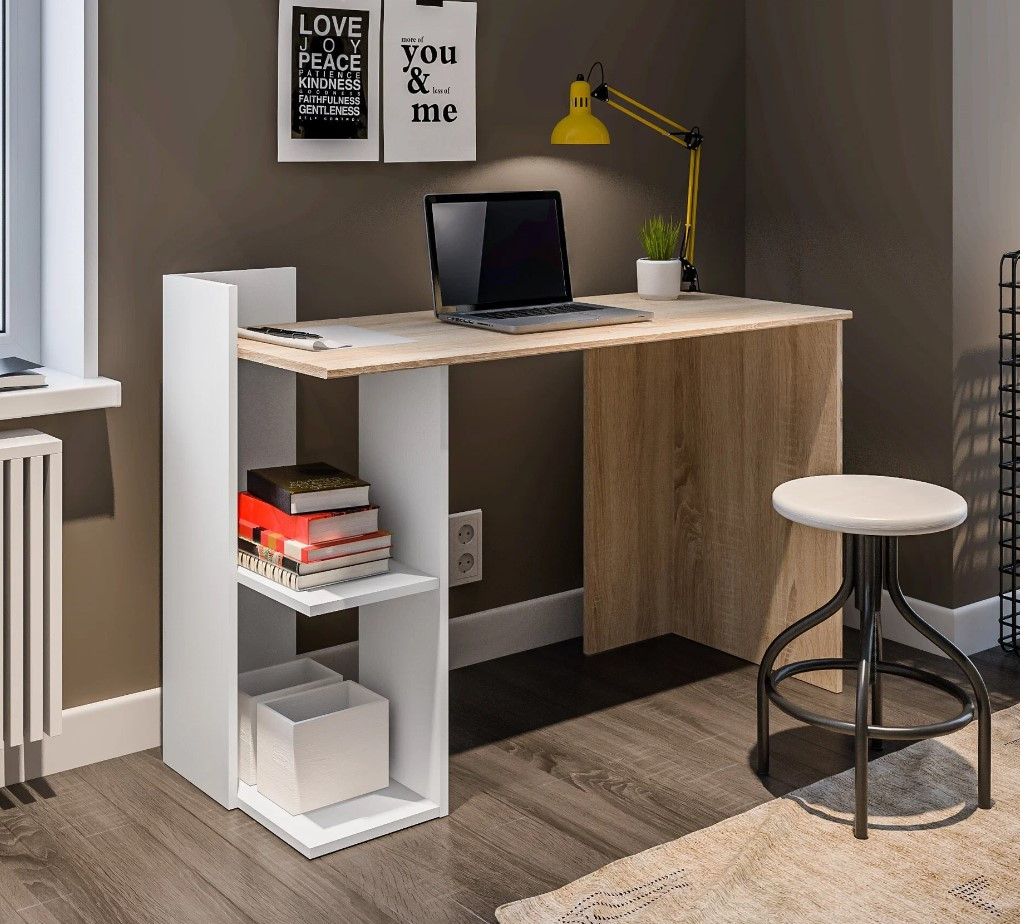Сучасний, зручний та практичний письмовий стіл вносить сучасний стиль та геніальність в економії місця. Простота та естетичність, підкреслюють його привабливість, а вбудовані книжкові полиці забезпечують ідеальне місце для зберігання не тільки книг, але і безлічі корисних речей для дому та офісу ( кімнатних рослин, документів, канцелярського приладдя та багато іншого).