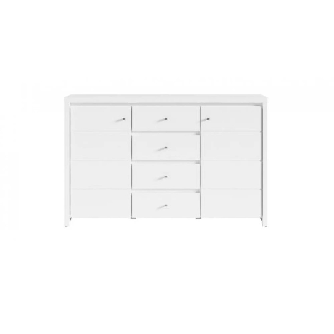 Комод в спальню ВМК (БРВ) Крістіна KOM2D4S Білий/Білий глянець Комод Крістіна KOM2D4S у білому кольорі з глянцевим фасадом представляє собою єдність стильного дизайну, надійності і функціональності. Виготовлений в Україні під брендом ВМК (БРВ), дана модель стане справжньою прикрасою сучасного інтер'єру завдяки своїй актуальній кольоровій палітрі і елегантній обробці. Габарити комода складають 143х40х92 см, що робить його вмістким і зручним для розміщеним навіть на обмеженій площі. Корпус і фасад виробу виготовлені з високоякісного матеріалу - поєднання ДСП, МДФ і ПВХ-плівки, які гарантують стійкість товару до зношування, вологості та інших зовнішніх впливів. Комод обладнаний чотирма вмісткими висувними ящиками для дрібних речей і двома широкими дверима, за якими можна приховати більші предмети. Фурнітура виконується за типом "ролик" з використанням фірмових петель, що забезпечує плавне і безшумне відкривання і закривання ящиків і дверей. Комод Кристина KOM2D4S є частиною однойменної колекції і ідеально поєднується з іншими предметами меблів в цій серії. Характеристики: Висота: 92 см; Глибина: 40 см; Довжина: 143 см.
